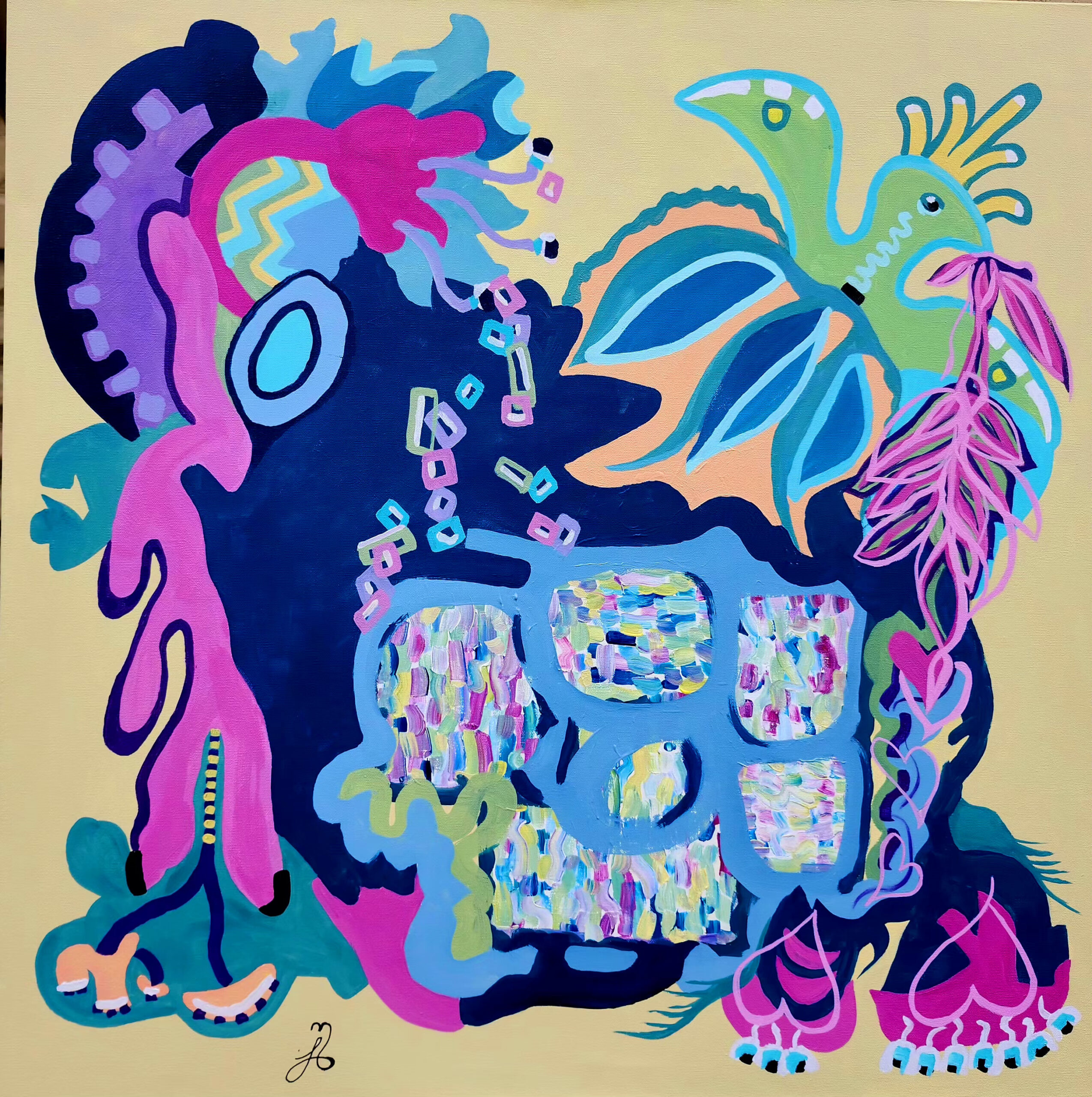 A crowned phoenix rises, carrying branches of love—gifts of blessing for each new creation. From the vastness of cosmic consciousness, life pours itself into form again and again, a honeycomb of infinite expression. Each cell, each being, each spark thrives on Love. As we all do.